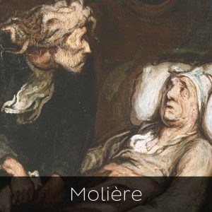 Argan se croit très malade. Autour de son fauteuil qui trône au milieu de la scène, le docteur Diafoirus et M. Purgon, l’apothicaire, lui dispensent